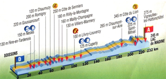 Stage 4 on July 3rd. 1996. From Soissons to Lac de Madine - 232.00 km.