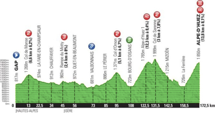 Stage 18 on July 18th. 2013. From Gap to Alpe-d´Huez - 168.00 km.