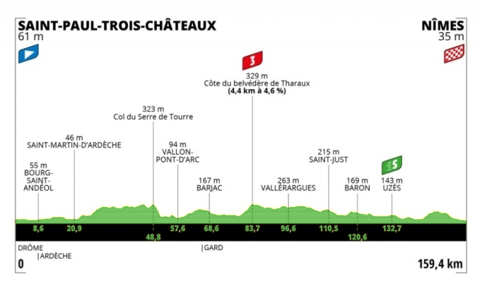 Stage 12 on July 8th. 2021. From Saint-Paul-Trois-Châteaux to Nimes - 159.40 km.