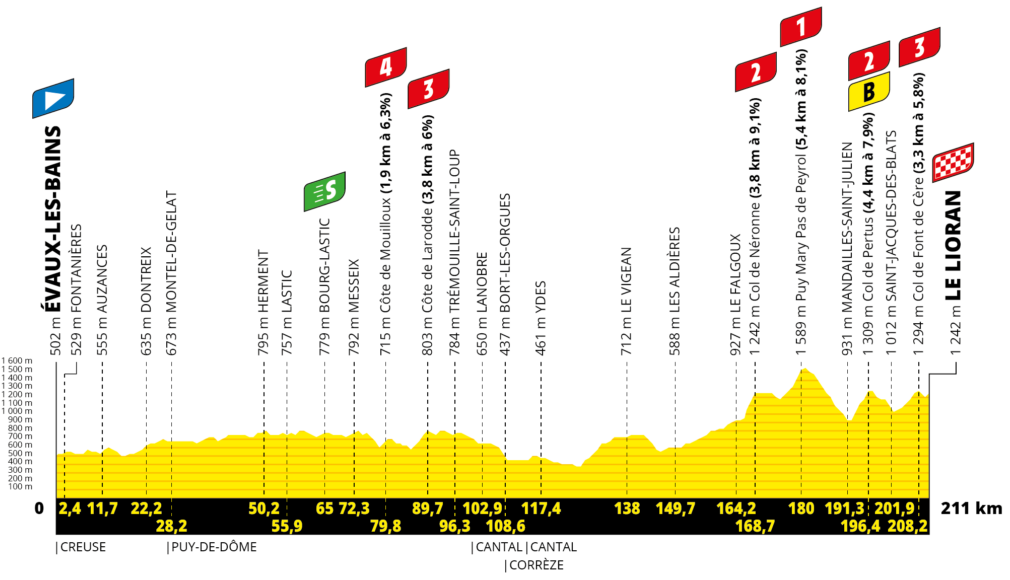 Stage 11 on July 10th. 2024. From Évaux-les-Bains to Le Lioran Cantal - 211.00 km.