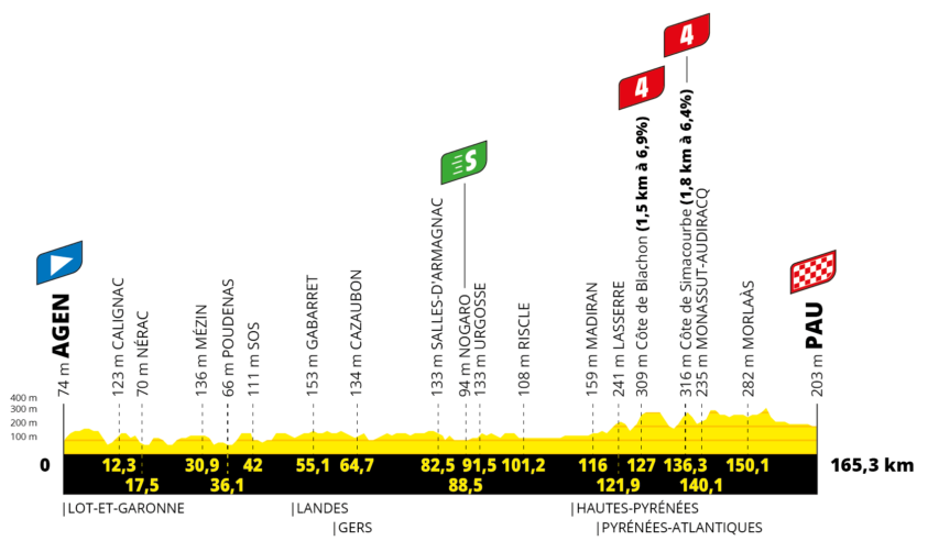 Stage 13 on July 12th. 2024. From Agen to Pau - 165.30 km.