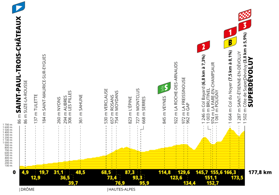 Stage 17 on July 17th. 2024. From Saint-Paul-Trois-Châteaux to Super Dévoluy - 177.80 km.