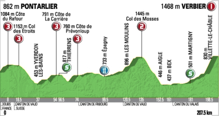 PontarlierVerbier | Dist: 207.50km. | Winner: Alberto Contador